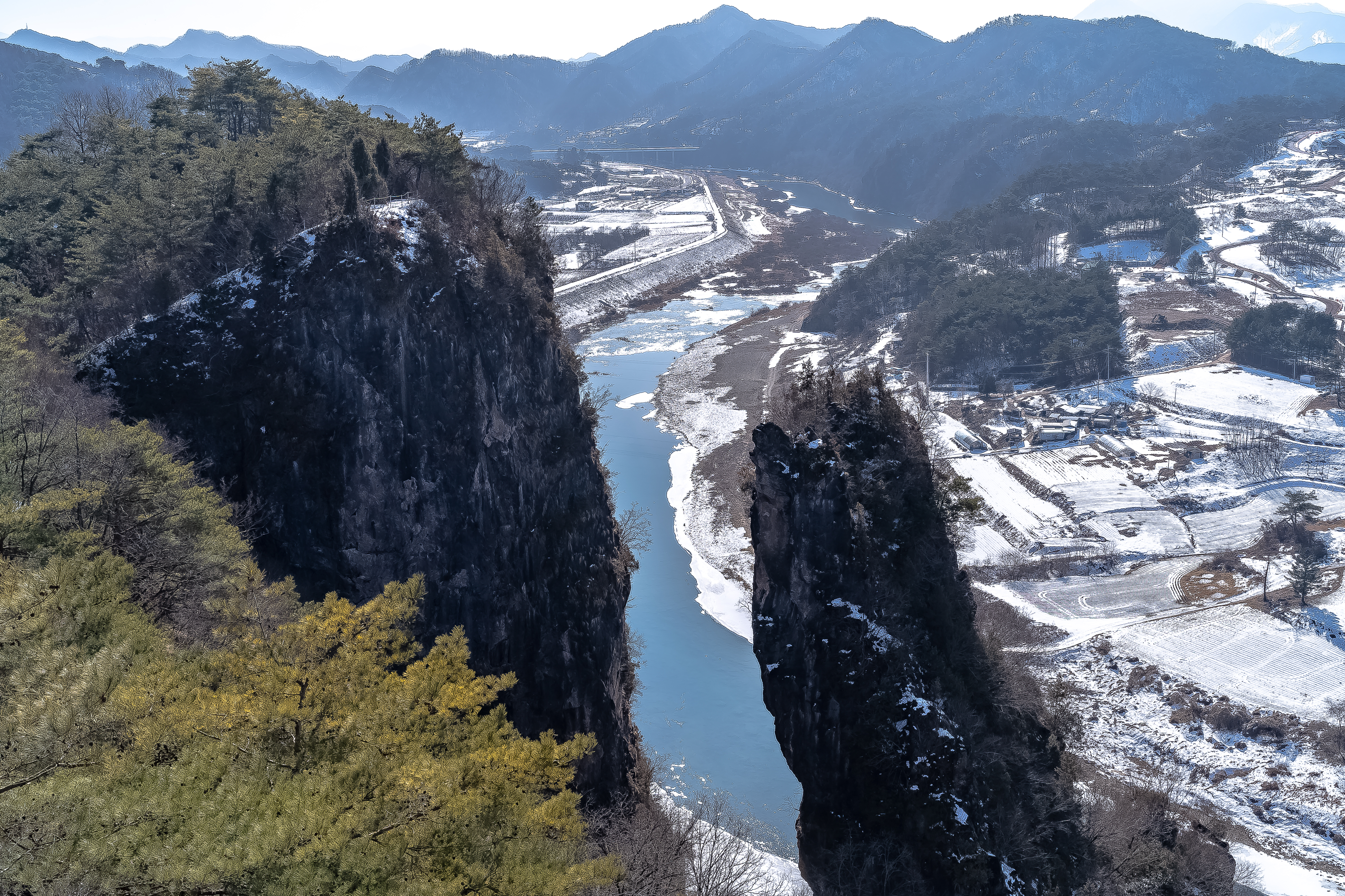 After looking around the museum, I also stopped by Cheongnyeongpo and Seondol nearby. Cheongnyeongpo is where King Danjong was exiled, and it had a unique atmosphere like a small island surrounded by a river. Seondol is a huge rock that towers high and looks really majestic when combined with the silence of winter. Both places have great natural scenery, so they were great for a walk.