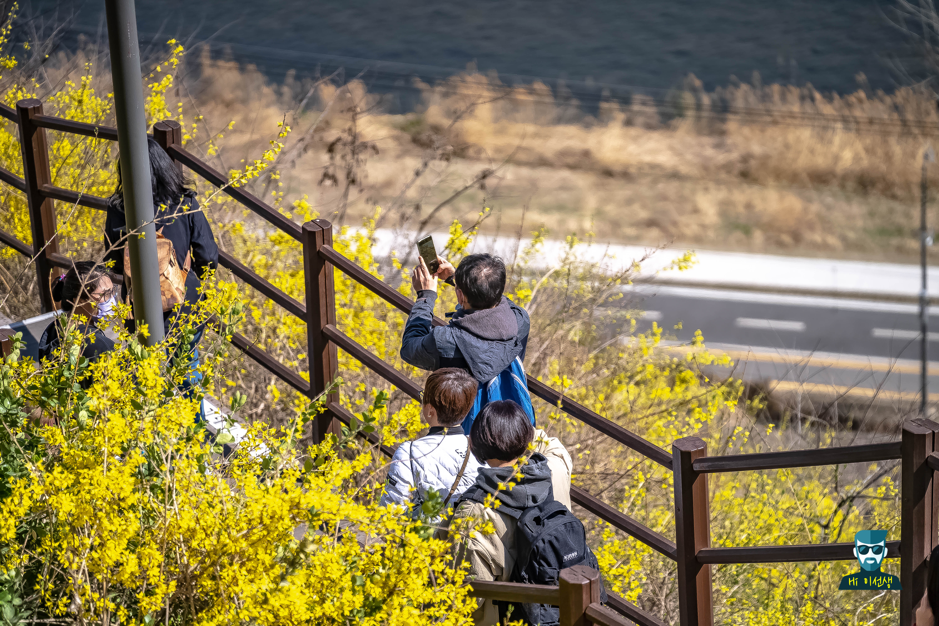 응봉산 오르기 전 한강변 따라 개나리가 피어 있어서 사진 찍기 딱 좋아!