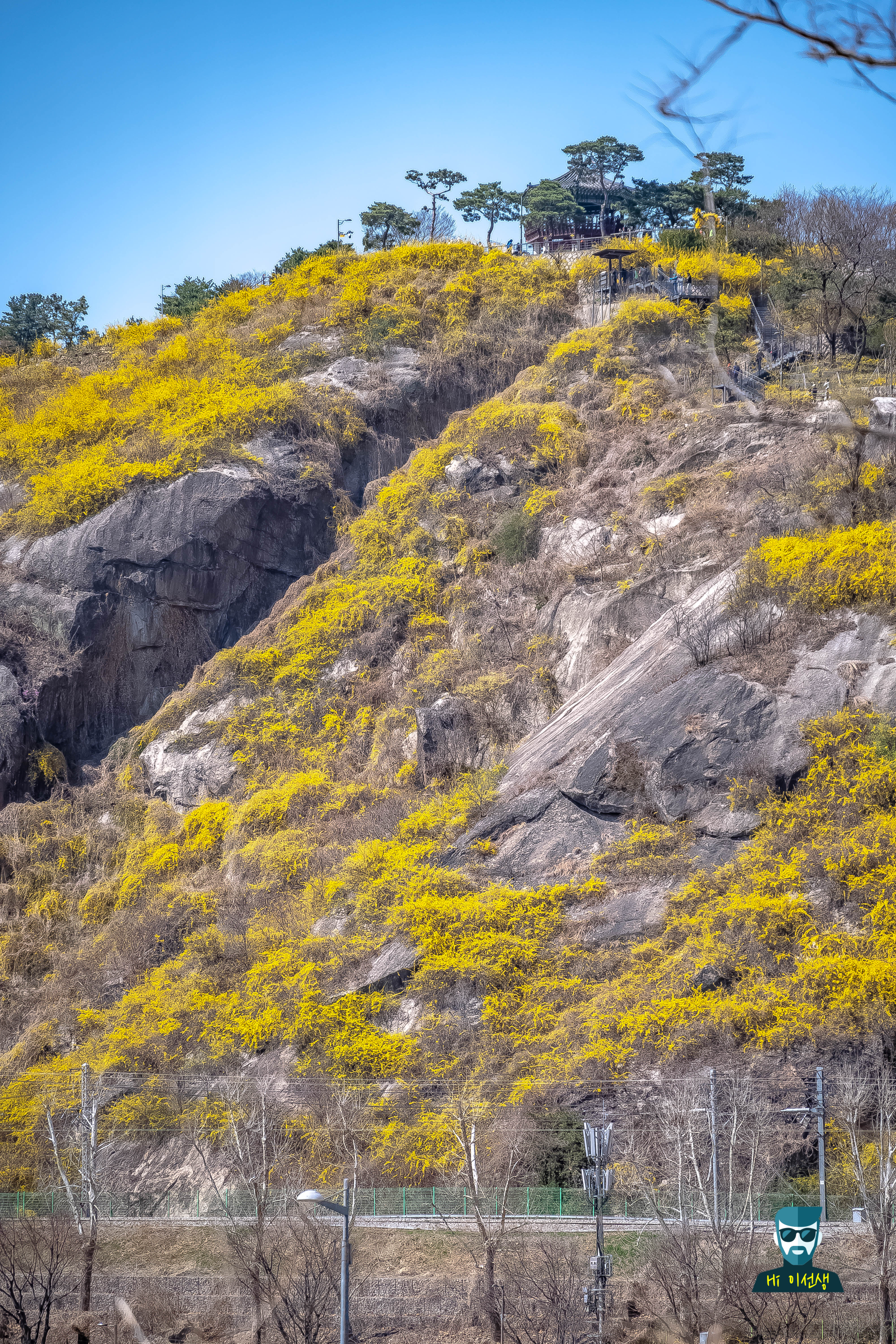특히 석양질 때 올라가면 노란 개나리 + 주황빛 하늘 조합이 레전드야.