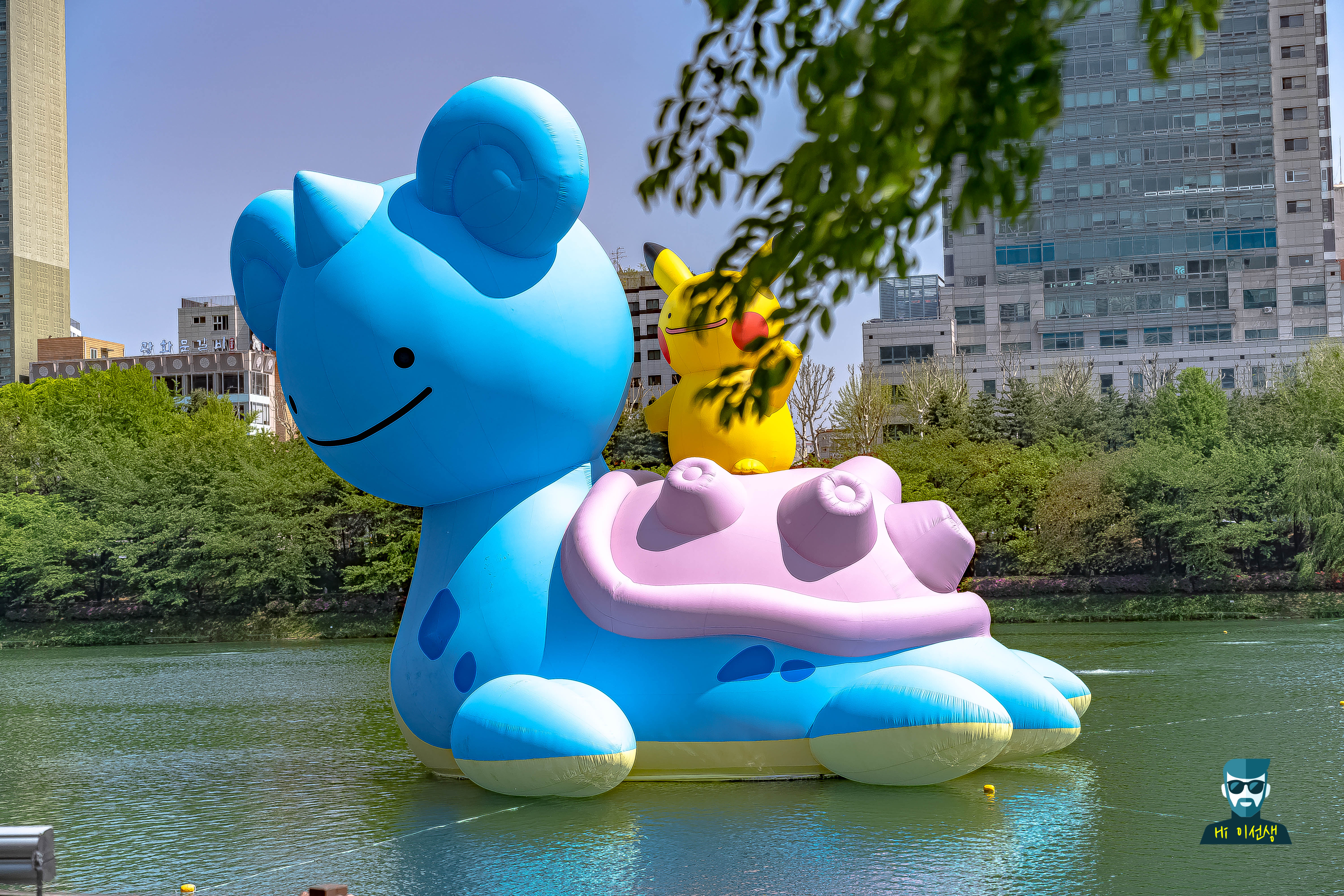 석촌호수에는 거대한 라플라스와 피카츄 조형물이 떠 있었어요.