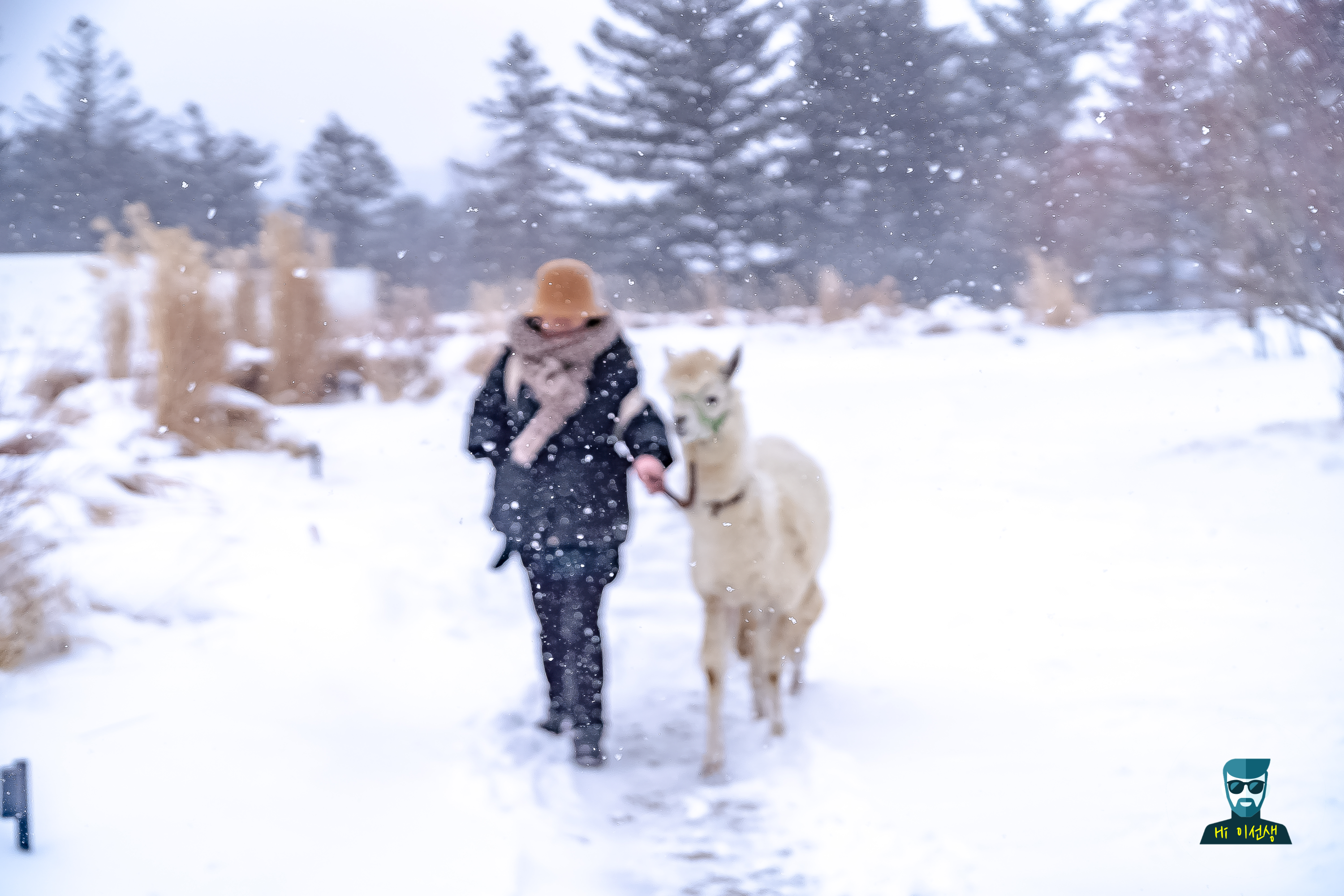 눈 덮인 풍경 속에서 알파카랑 걷는 게 뭔가 동화 속에 들어온 기분이었어. 사진도 엄청 찍었지!