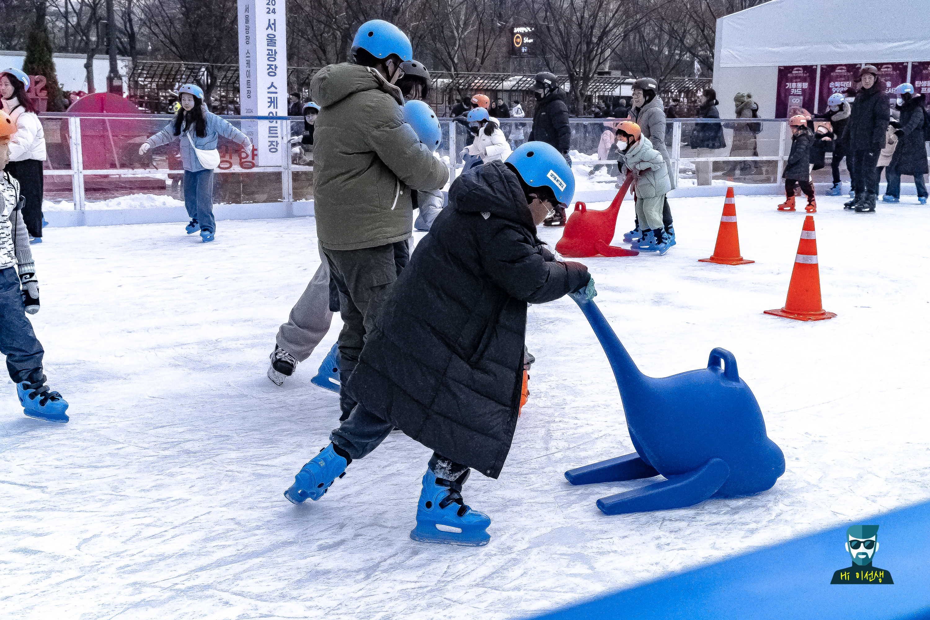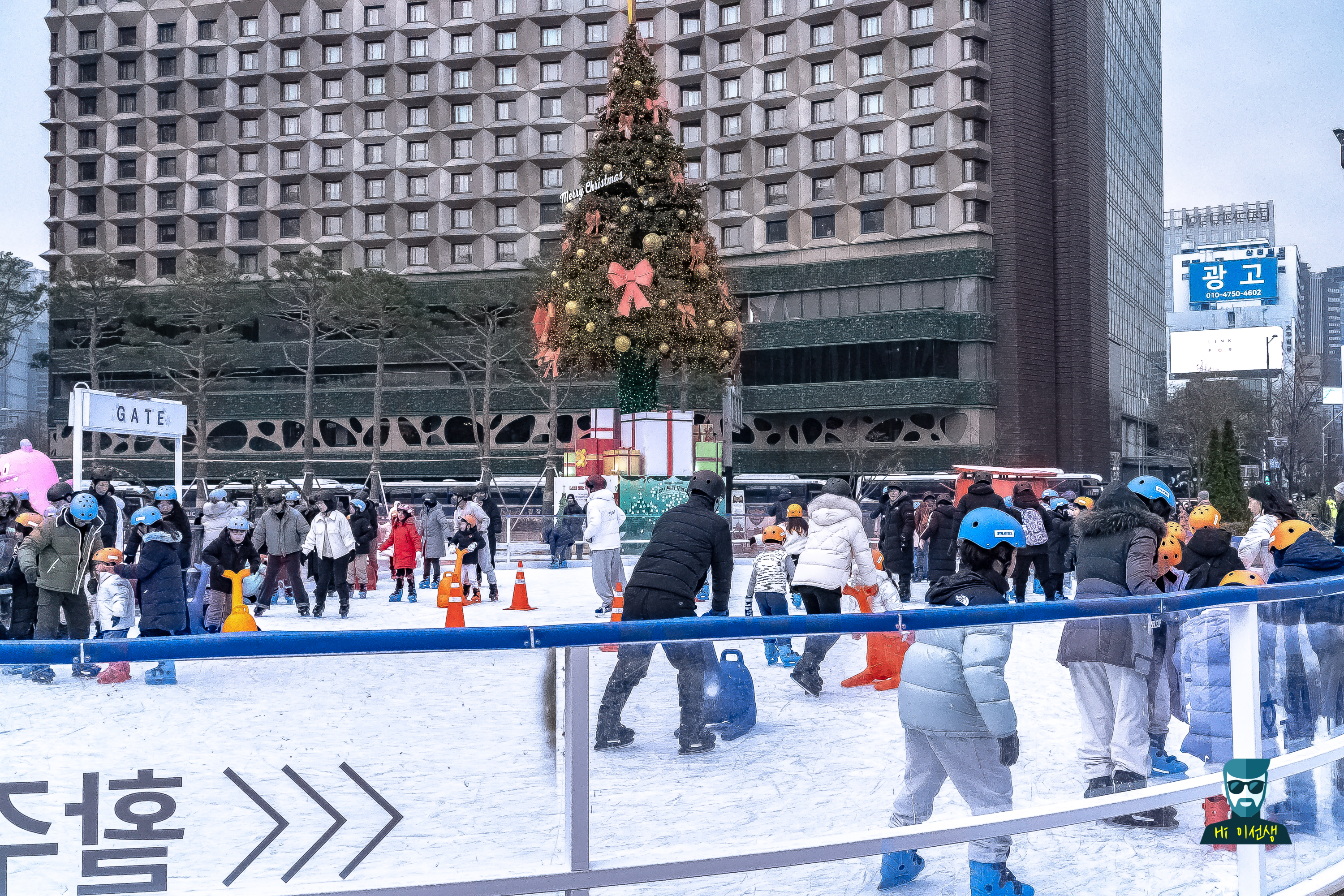 Hey, friends! One of the places you must visit in winter is Seoul Plaza Ice Skating Rink. I went there in broad daylight a while ago, and there were so many people! There were many families, couples, and friends, so the atmosphere was really lively. There were many parents with children, and it was great to see the children skating so excitedly.
